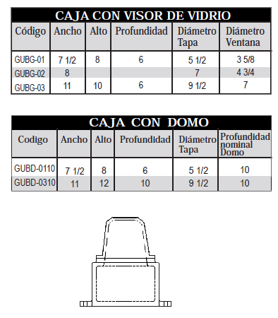 | DOMO: •Domo roscado para el alojamiento de equipos en áreas peligrosas. •Se utiliza para albergar contactores, reles o artefactos eléctricos. | CARACTERÍSTICAS •VISOR: La ventana de vidrio posee un gran diámetro para una mejorvisibilidad. •DOMO: Planchas para montajes internas en varias medidas las cuales se extienden a lo largo del domo. |